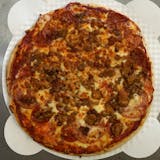 Pizza sauce, pepperoni, and sausage smothered with mozzarella cheese.
